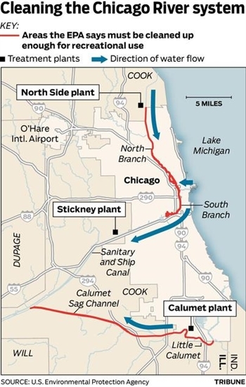 None of that is news. What is news is that on May 11, the U.S. Environmental Protection Agency (USEPA) issued a letter to the Ill. Environmental Protection Agency (IEPA), telling them and the Ill. Pollution Control Board (IPCB) to improve the water quality standards for the portions of the Chicago Area Waterway System that are used most heavily for recreation (see map).