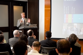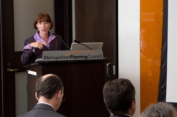 The second panelist to speak was Ill. Sen. Heather Steans (D-Chicago), who discussed how the state’s transportation investment program is taking shape. Sen. Steans remarked that while Illinois’ $31 billion Jobs Now state capital program does provide some funding for public transit, the state has the ability to bond $1.75 billion for transit and has gone to market for $600 million of that authorization; and commitments have already been made. That means projects like the CTA’s Red Line extension on the South Side of Chicago, recommended by the Chicago Metropolitan Agency for Planning as one of the five major capital projects in the region, will need a new revenue stream. Steans noted that state funding is drying up for future transportation projects and the ongoing maintenance that accompanies them. The state hasn’t increased the gas tax or indexed it to inflation since 1991, and Sen. Steans thinks it will be impossible to do so in this political climate. Steans thinks one of the answers is PPPs in Illinois. She was lead sponsor of the Illinois Public-Private Partnership for Transportation Act, enacted Aug. 22, 2011. MPC has been a lead advocate for this new law, which allows the Illinois Dept. of Transportation to explore PPPs for new transportation projects, such as the Elgin-O’Hare Express, West Loop Transportation Center, a bus rapid transit corridor, or the CTA Red Line extension. Read more about the details of Public Act 97-0502 here.