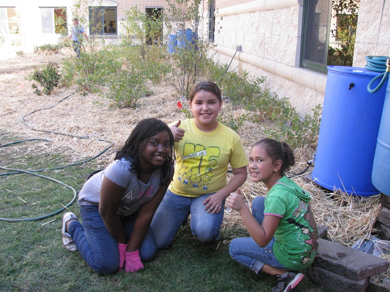 - placement of several rain barrels at most of the school downspouts;