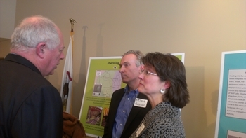Gov. Patrick Quinn talks with MPC President MarySue Barrett and Arthur Pearson from the Donnelly Foundation about the Millennium Reserve.