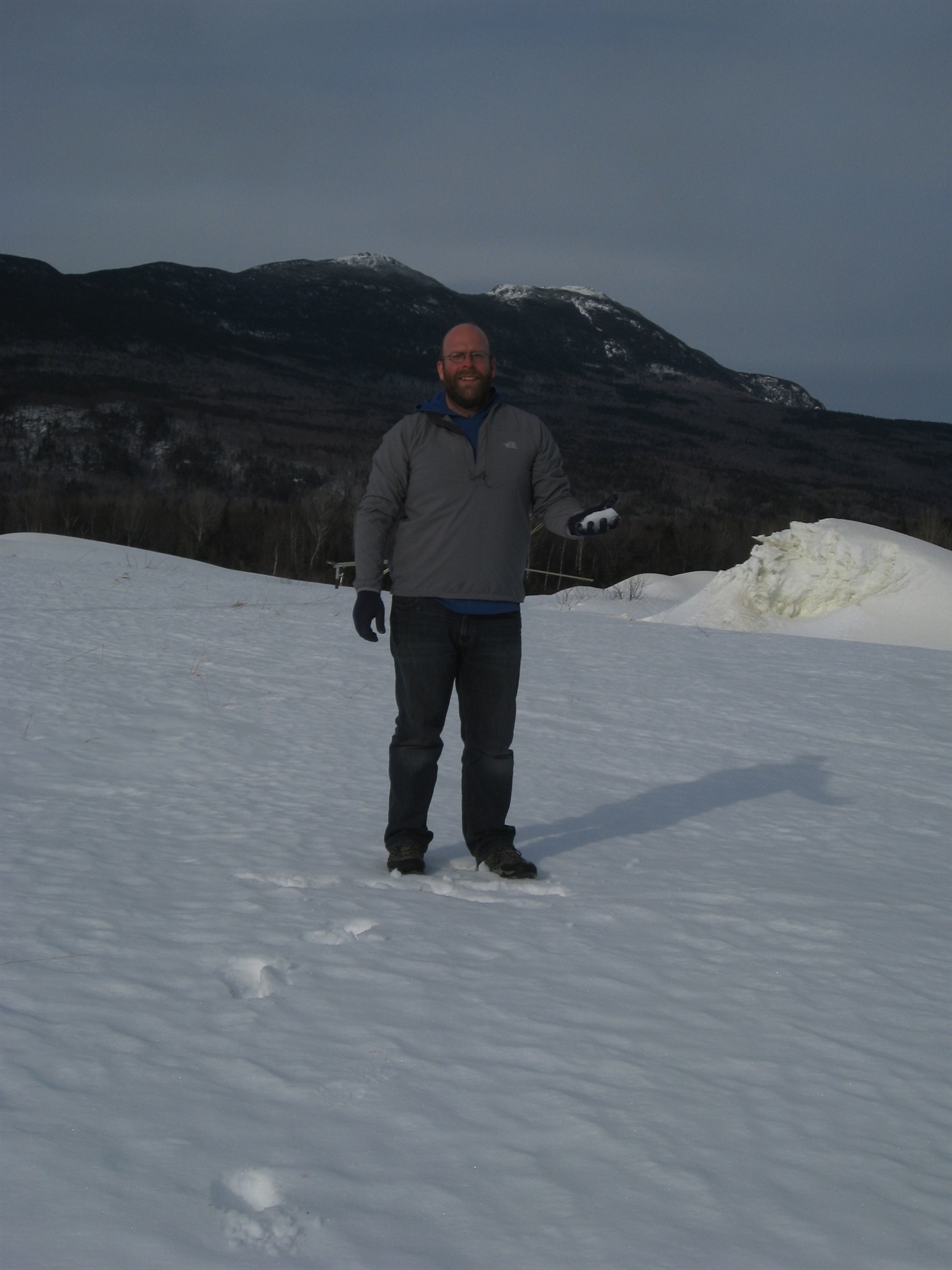 That's me with a handful of Snowfluent. I'm standing in front of a "shooting range" to test Snowfluent quality.