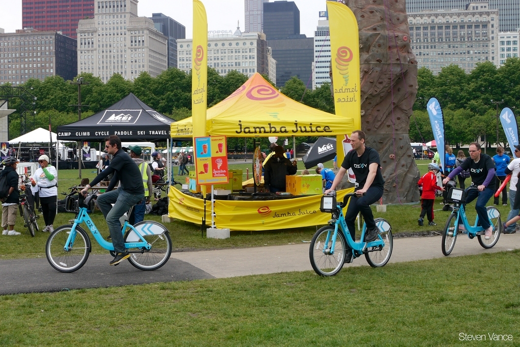Chicagoans try out their new Divvy bikes.