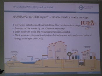 I mentioned Frankfurt in the title, and while the main lesson there was "Don't try to compete with Hamburg," some staff from Darmstadt University presented on Semizentral Germany, which is comparable to Jenfield in many regards. While Jenfield is a neighborhood, Semizentral is building modular units that can be rapidly built in developing countries and use potable water and resulting sewage to produce new potable water, non-potable water when you don't need to drink it, energy, caloric heat, and stabilzed waste that can be used as fertilizer. This stuff isn't the future. It's here.