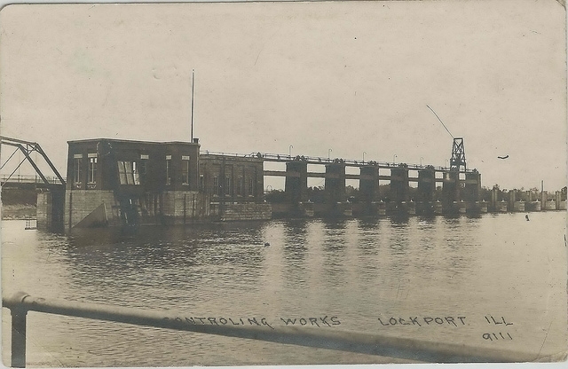 The Lockport Lock at the western end of the Chicago Sanitary and Ship Canal, which has a 5.8-foot change in elevation over its 26-mile length.