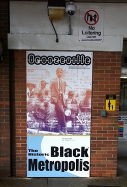 In under a year, QCDC and its partners have made progress on all of these fronts. As we recently highlighted, last year QCDC received a grant from the Illinois Violence Prevention Authority to develop a Placemaking project in which 30 youth participated in a 10-week program to create graphic design pieces that are now being installed on the roll-up doors along the corridor. Long a staple of after-hours security, these doors are being transformed from blank walls to lively canvases that celebrate Bronzeville’s history.