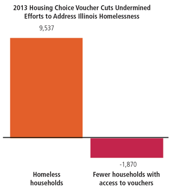 Unfortunately, the HCV program experienced an unprecedented reduction in federal appropriations in 2013 due to sequestration. While the budget sequester may be officially over, its impacts are far reaching. Nationally, 70,000 fewer households were able to use their rental assistance vouchers at the end of 2013, compared with a year earlier. In Illinois, 1,870 fewer households were able to use their rental assistance vouchers; and if Congress does not restore HCV program funding to prior levels, only half of the 1,870 rental assistance vouchers will be reinstated by the end of 2014. This situation will add to the wave of growing housing cost burden, instability and homelessness in Illinois and risk reversing the impressive progress that many communities have made to address these issues.