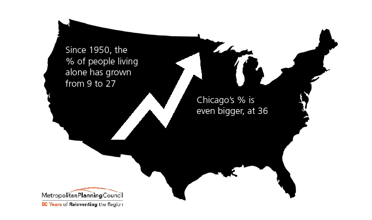 - Look at how this trend has emerged in Chicago and the region in terms of who is living alone in our region and why, and