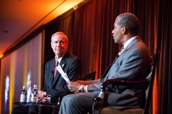 (Chicago) … The two main candidates for Illinois governor, Gov. Pat Quinn (D) and Bruce Rauner (R), spoke at the Metropolitan Planning Council’s (MPC) Annual Luncheon on Thursday, Aug. 28, at the Fairmont Chicago Millennium Park. Nearly 1,000 civic, business and community leaders attended the luncheon to hear the candidates’ responses to questions about public finances, transportation funding, flooding, housing and government efficiency.