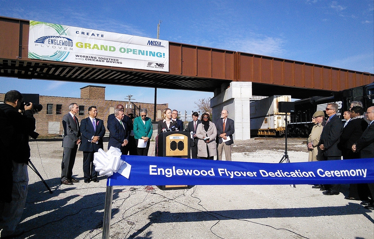 The opening ceremony of the Englewood Flyover, which will save time and money for freight and passengers.
