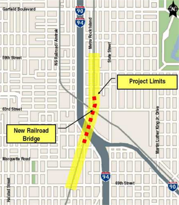The Englewood Flyover includes a new bridge for the Metra Rock Island over the Dan Ryan Expressway and Norfolk Southern's tracks.