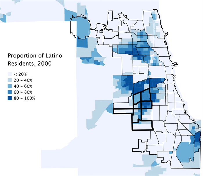 A quick scan of Census data shows that each of the seven communities gained Latino population, by as much as 127 percent in Ashburn. All but one community, Gage Park, gained African American population. All but one, West Lawn, lost White residents.