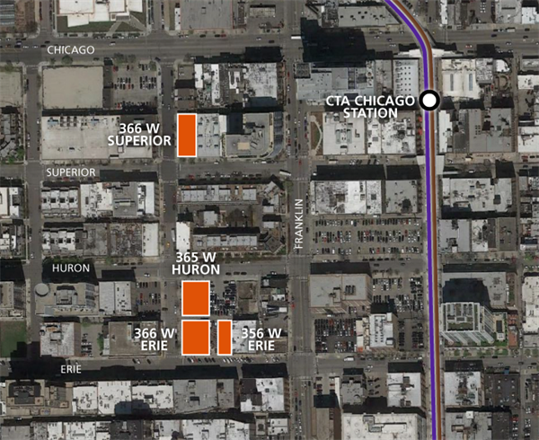 Earlier this month, the City of Chicago announced that it would sell four city-owned parking lots in River North, one of the city’s fastest-growing and most popular neighborhoods. The lots are located within a few blocks of the Chicago Transit Authority “Chicago” station on the Brown and Purple Lines, just north of Merchandise Mart.