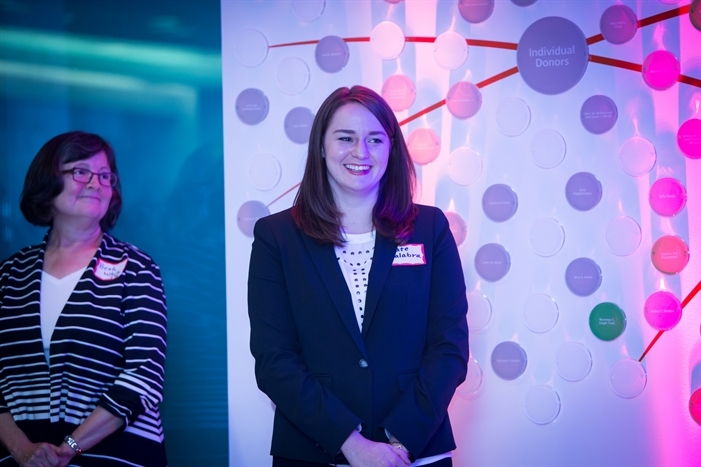 But MPC’s event didn’t only celebrate vision past and present; we also highlighted the future: two six-month fellowships, through which promising young city leaders have a chance to work at MPC for a stipend. The Allard Fellowship, named for longtime MPC President Jean Allard and generously seeded by Sonnenschein, Nath & Rosenthal (now Dentons) in her honor before Allard passed away in 2012, is designed to attract young talent not currently in a position to volunteer at MPC. The Wayfinding Fellowship, supported by a fund generously seeded by longtime MPC Board member James Mann, is designed to cultivate and retain a well-regarded MPC research assistant. Our very first Wayfinding fellow, Kate Calabra, said a few words about what the fellowship meant to her: