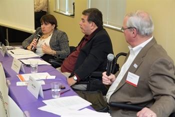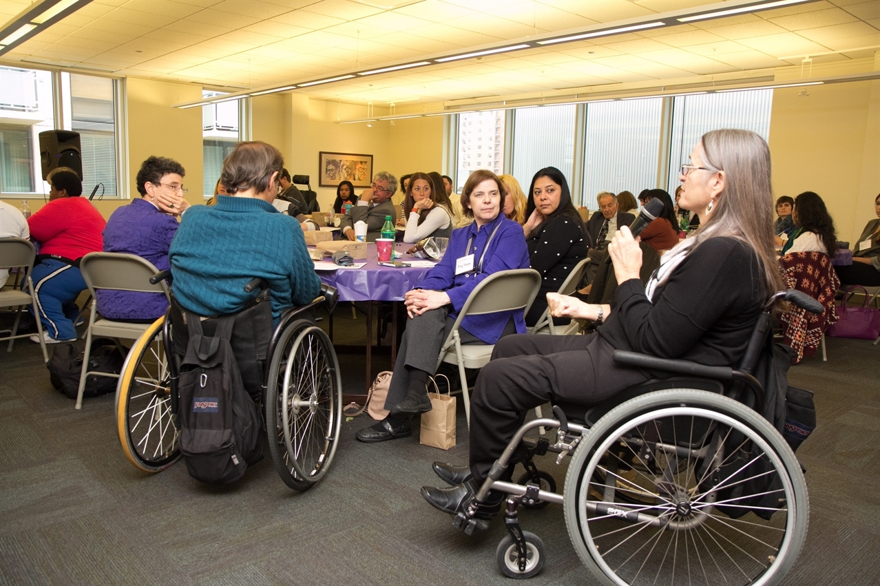 Marca Bristo of Access Living addresses the crowd at our roundtable on Oct. 27.