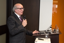 Amtrak's Ray Lang speaks to a full house in MPC's conference center.