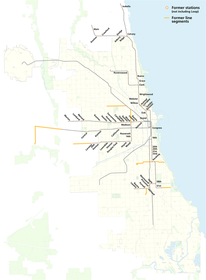 With 145 stations, Chicago’s El system has the second-most number of stops of any heavy rail rapid transit network in the United States after New York City. People throughout the Chicago region rely on these stations for their daily commutes and other types of daily travel. What they may not realize is that there used to be many, many more of them on the lines traveling through their neighborhoods.