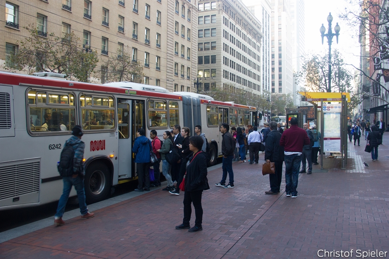 San Francisco is the U.S. city where all-door boarding has been implemented most extensively. In 2012, the Muni light rail and bus system, which operates within the city of San Francisco, began allowing customers to board in the back on all of its buses and trains. The change made it possible for customers with the city’s tap cards (similar to Chicago’s Ventra system) to simply tap-in at a reader in the back of the bus.
