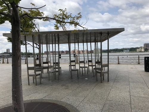 Interesting design offers a place to sit and enjoy the view of the Hudson River.