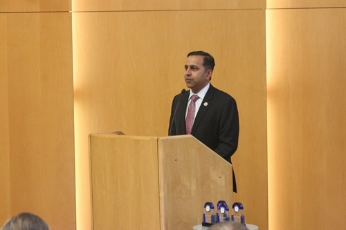 Congressman Raja Kirshnamoorthi (D-8th District) gave a warm welcome and talked about efficiency at the federal level especially in areas of cost savings and transparency. One of his current focus areas is technical and vocational programs—identifying what skills are in demand and identifying ways in which the private sector can help offset costs. A win for employers, job seekers and taxpayers alike.