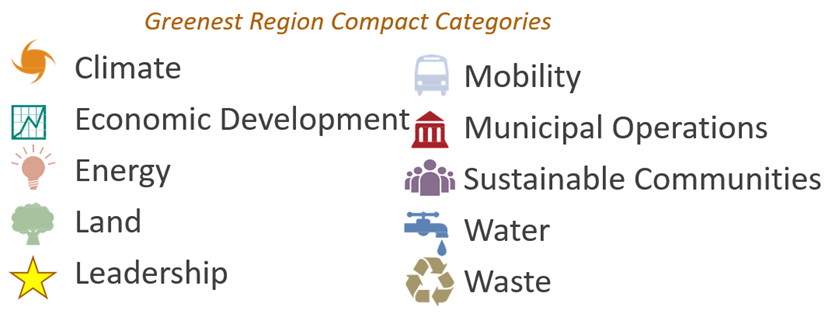 The ten action categories of the Greenest Region Compact, a consensus-building framework for environmental sustainability