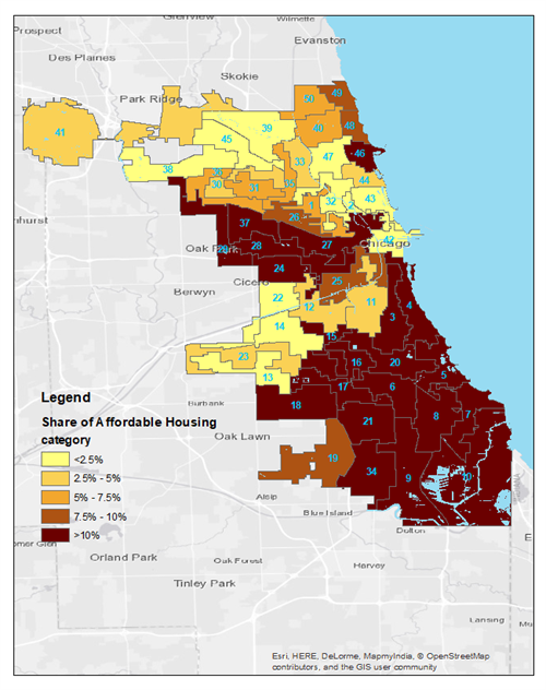 Share of affordable housing units by ward in the city of Chicago