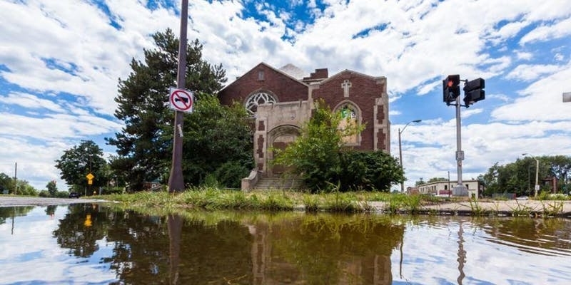 Properties in flood-prone areas, like this church, are participating in a unique, market-based approach to urban flooding