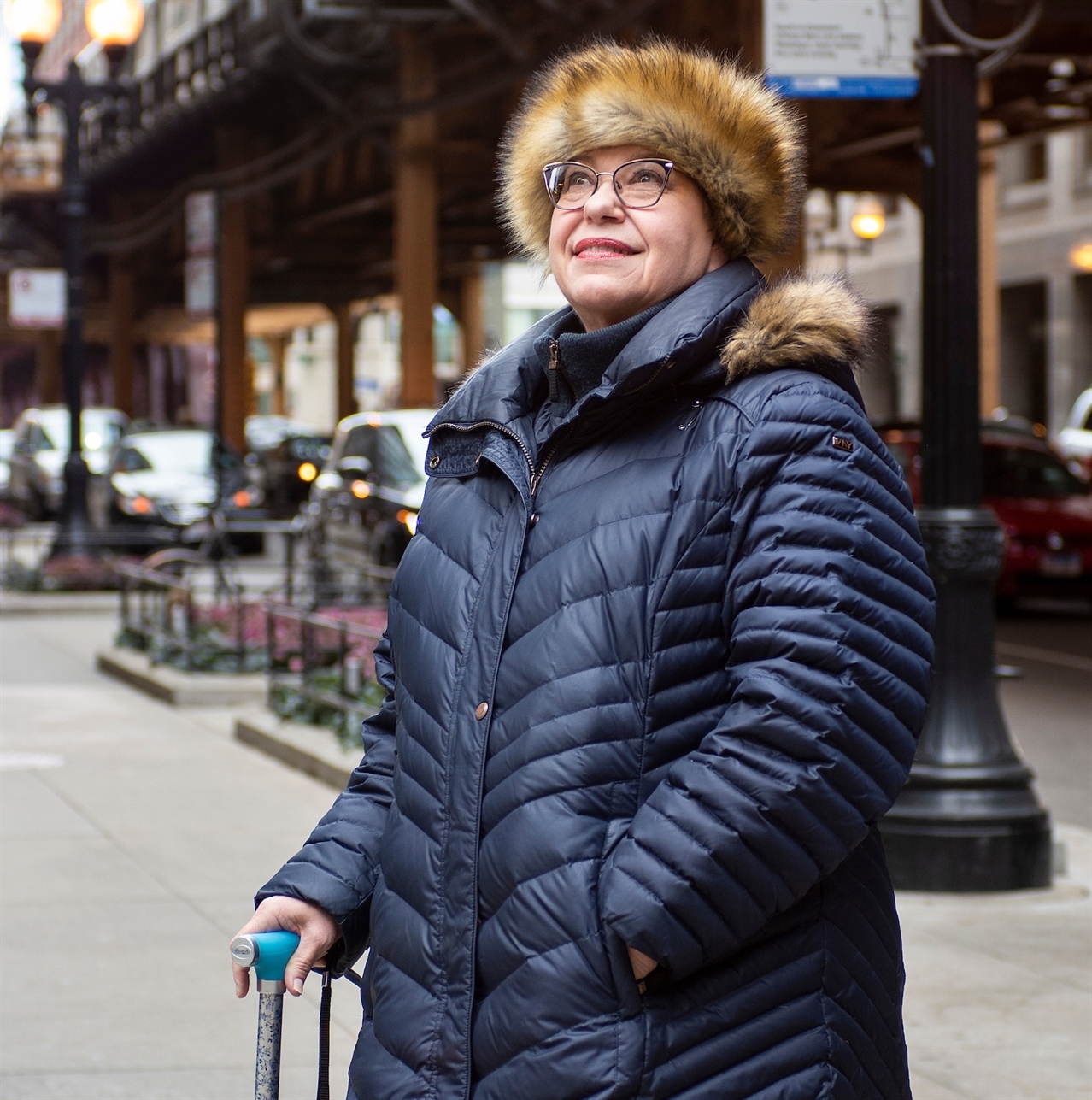 Vicky has since become an advocate and serves on Metra’s ADA Advisory Committee. She calls herself a “broken record” talking about the importance of accurate information about delayed trains, broken escalators, and all the little things that can make or break her commute. She once entered Union Station to find a stalled escalator and a crowd of hundreds of people. She enlisted the help of Metra police to navigate through the shoulder-to-shoulder crowd. Had Vicky known, she could have just entered from street level at a different entrance, and not risked being knocked over and overwhelmed. When a person’s balance feels off, and their body feels weak, an unexpected crowd is dangerous.