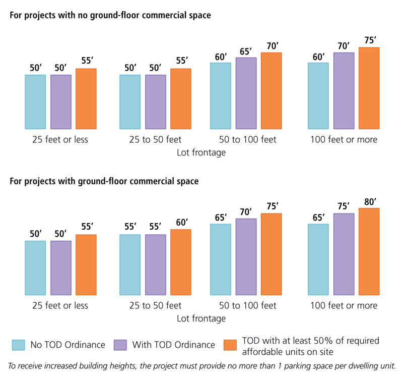Please review the TOD ordinance text and the city's zoning ordinance for definitive information about the effects of the ordinance on specific parcels; for more information on zoning, consult Second City Zoning. Before the ordinance was passed, MPC analyzed the impact of the ordinance and found it will provide a $450 million annual boost to neighborhood retail and a $200 million boost to the tax base of local governments.